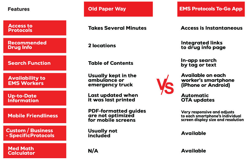 Our EMS Protocols To Go app is a customizable framework — your agency uploads its own EMS protocols, SOPs, and resources for lightning-fast access on any mobile device.